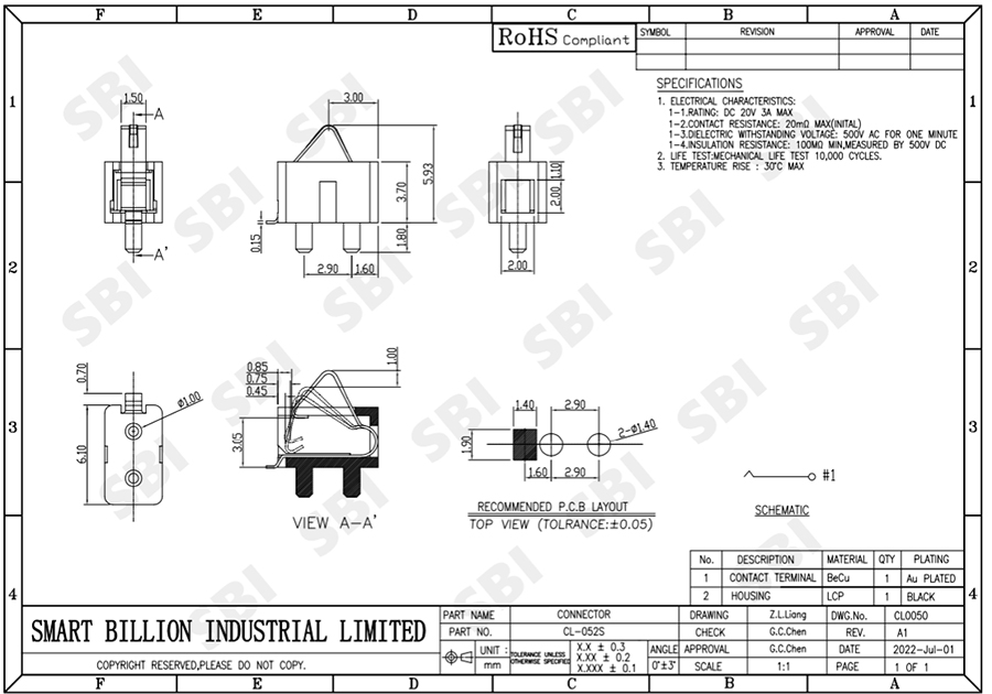 电池连接器 CL-052S