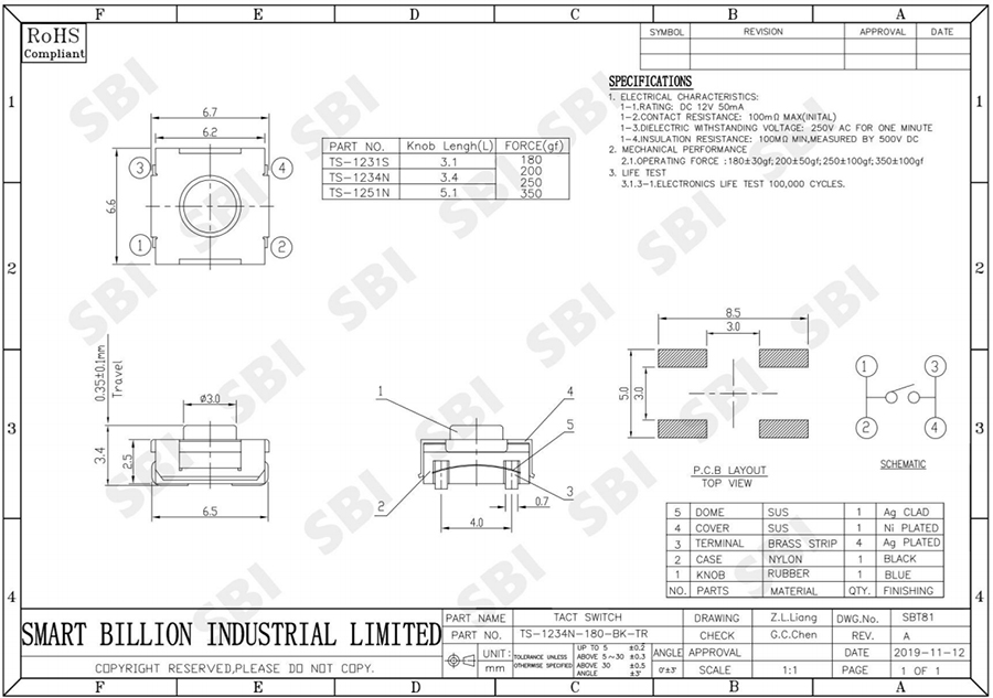 轻触开关 TS-1234N