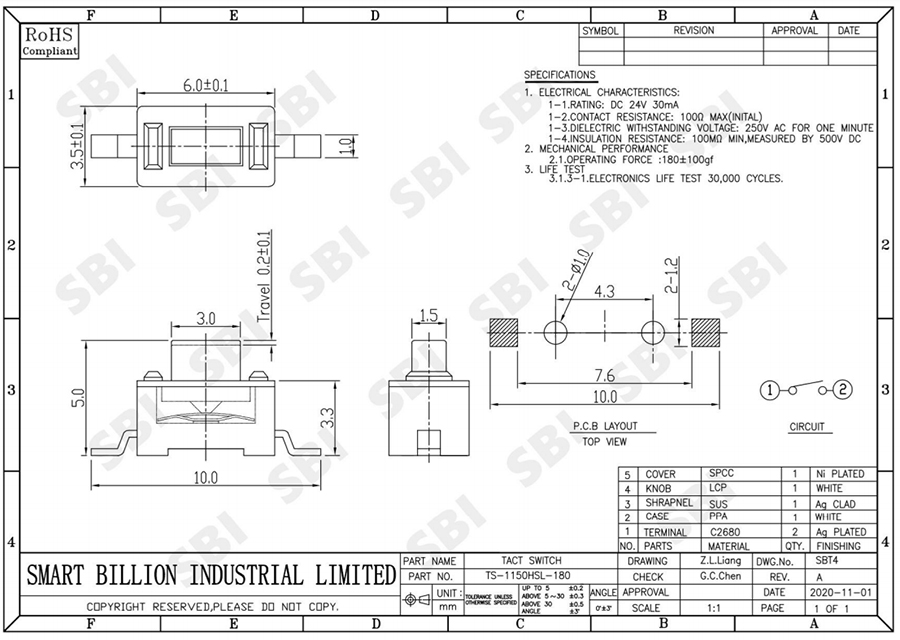 轻触开关 TS-1150HSL