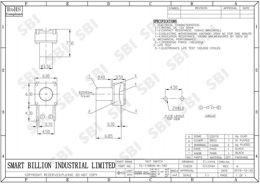轻触开关 TS-1168VN-M