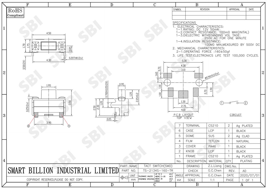 轻触开关 TS-2134S